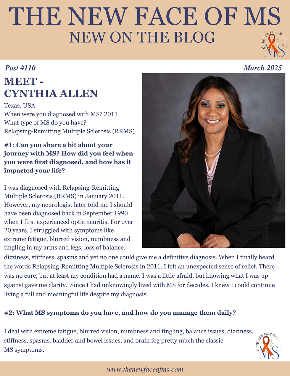 Meet - Cynthia AllenThe New Face of MS Mar 17, 20250 min readMotivated to share your story? Click here?